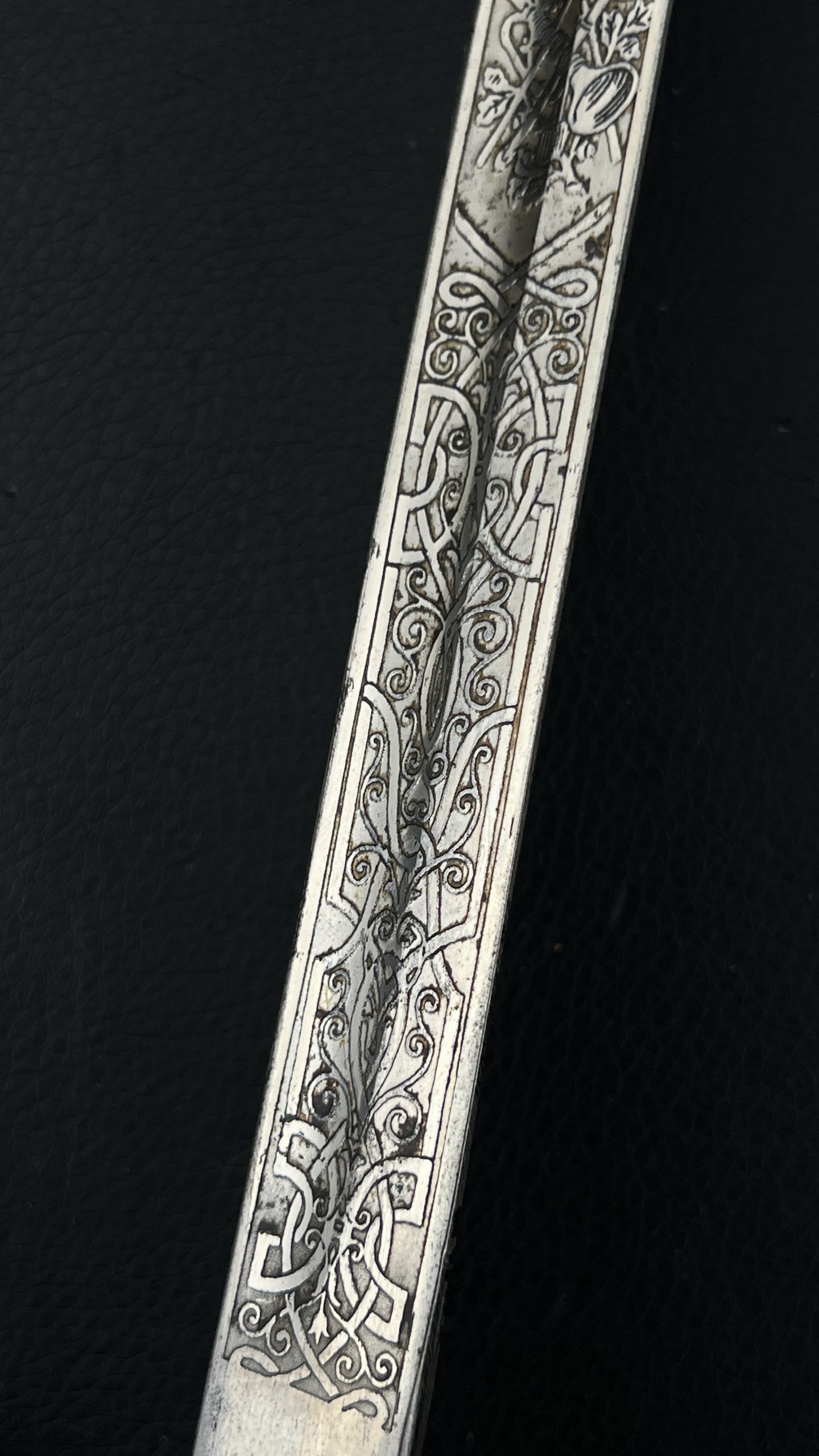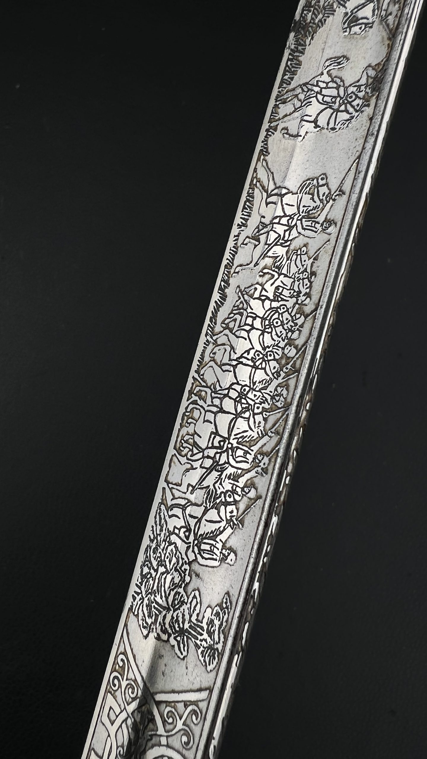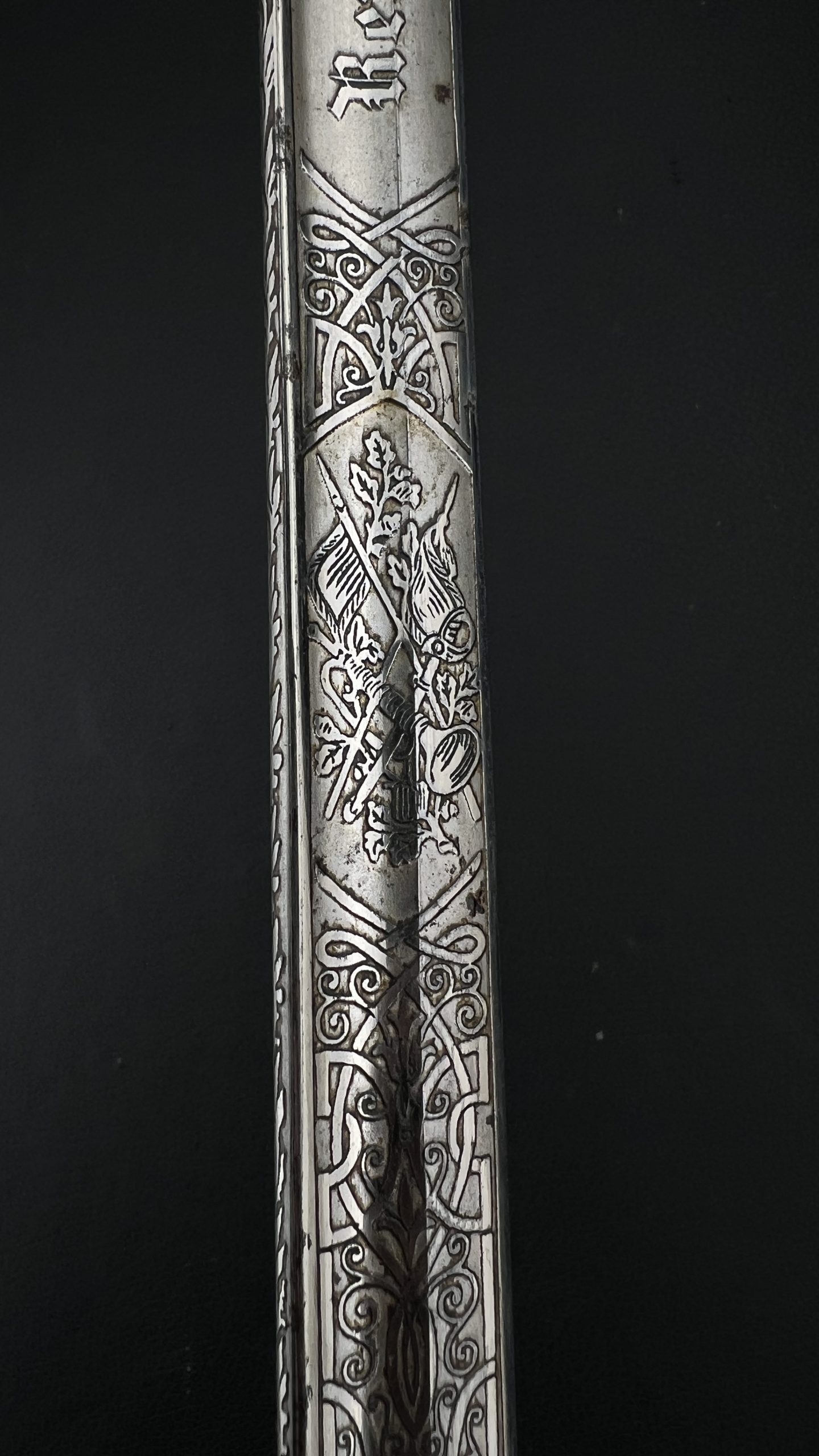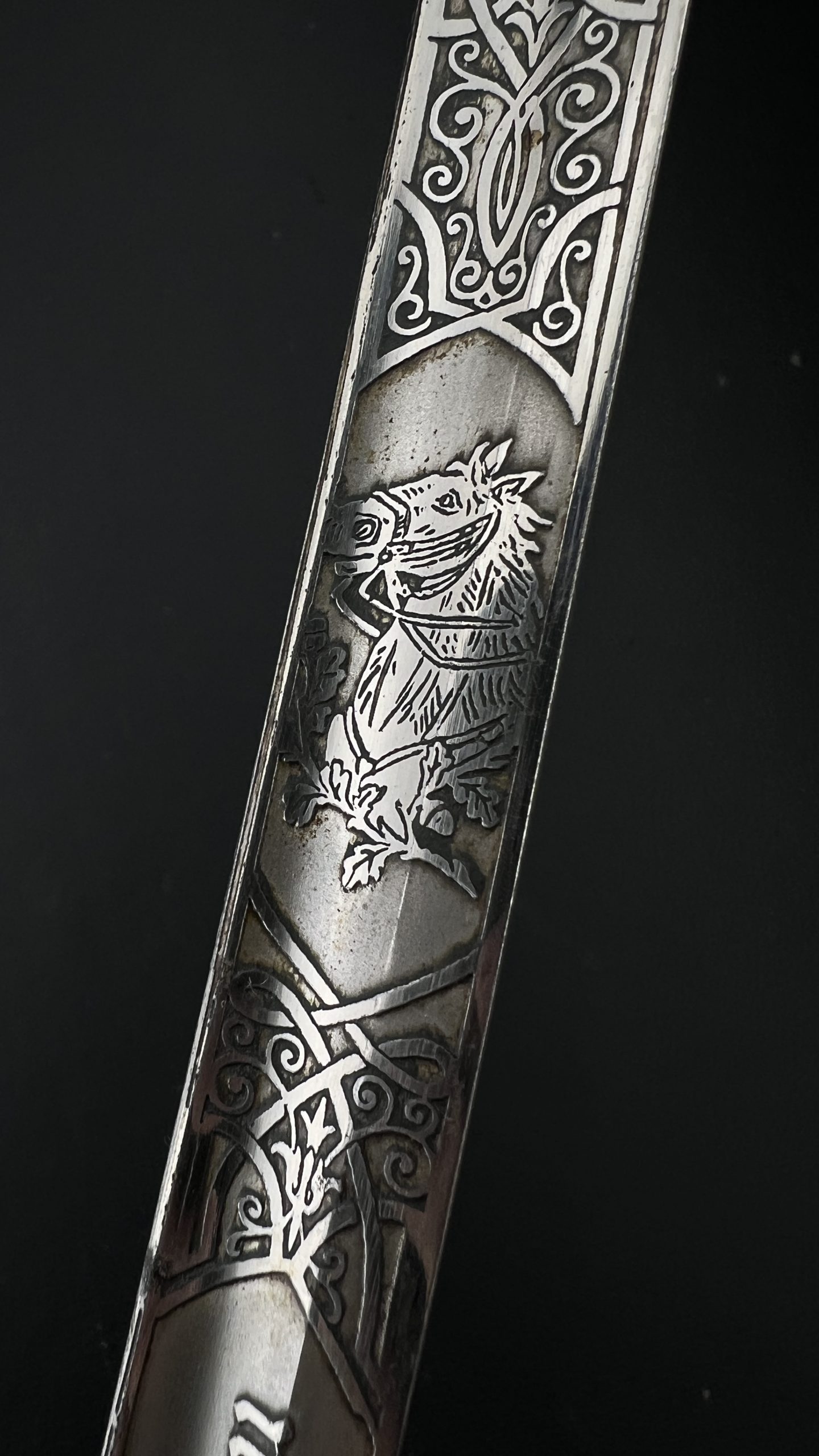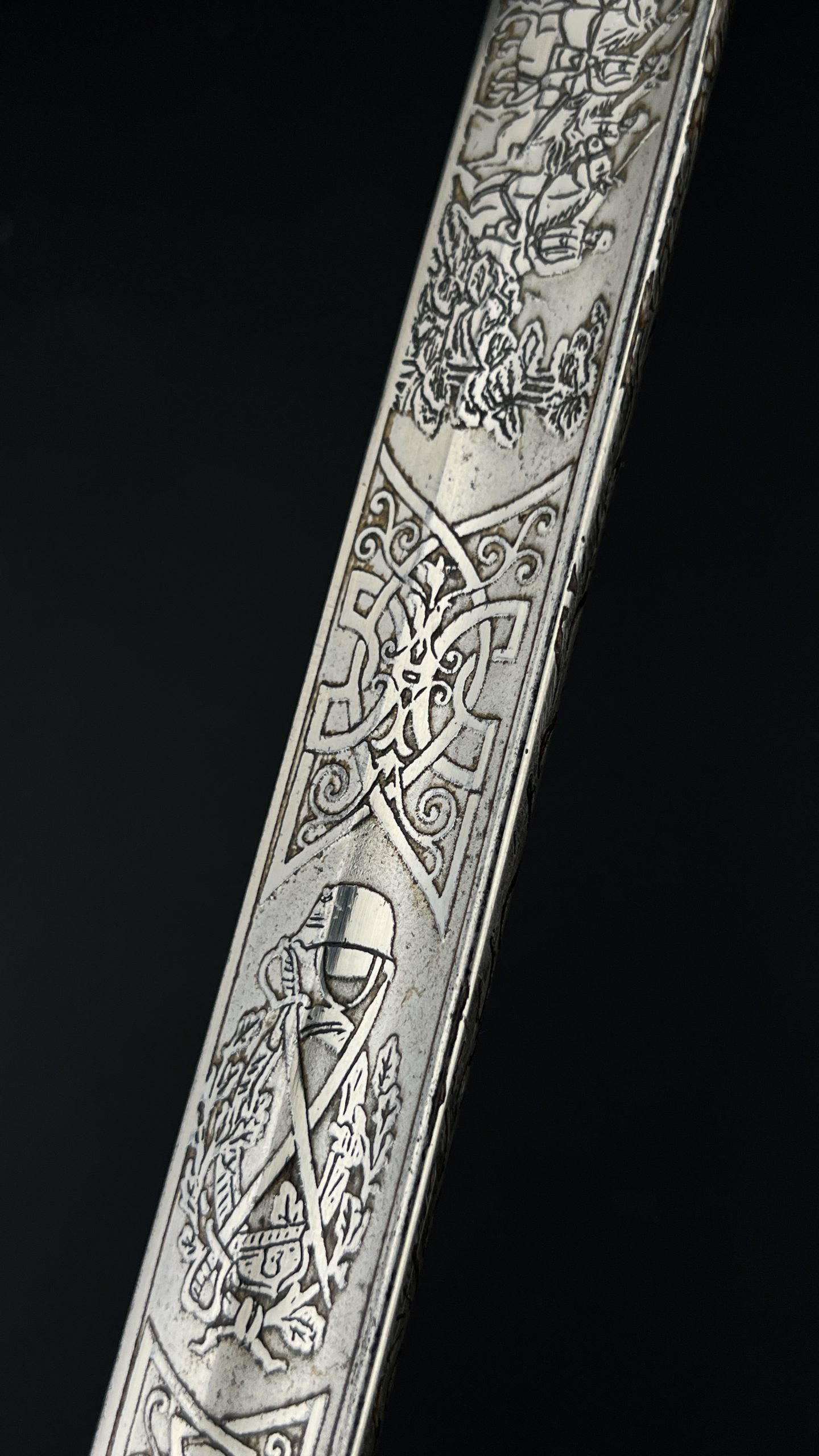 Клинок украшен  богатым травлением, включая кавалерийские мотивы, а также персональную надпись с указанием звания Gefreiter (ефрейтор), подразделения и 10-го кавалерийского полка, дислоцировавшегося в Торгау.